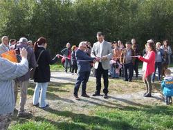 L'inauguration du verger a eu lieu en présence de la famille de Mme Marthe WABNITZ et de l'association des "Croqueurs de pommes de Franche-Comté Nord".